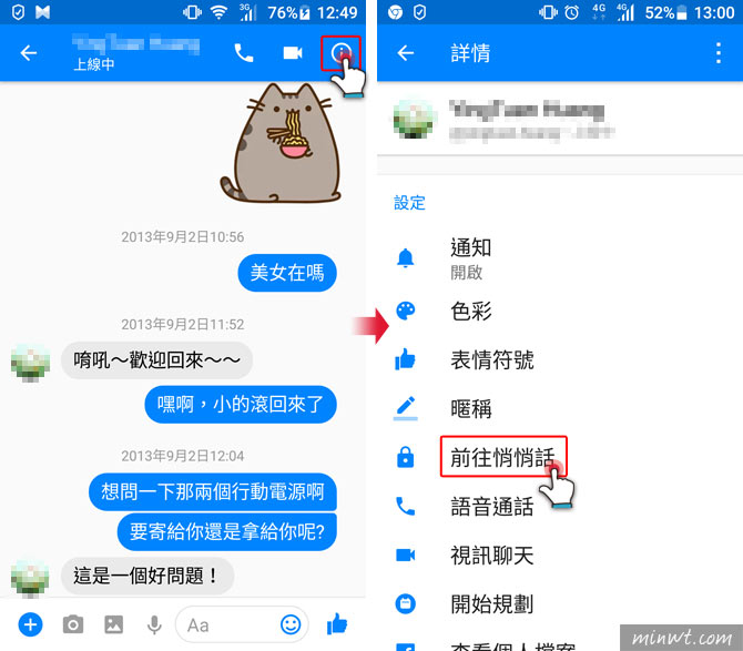 Facebook 訊息messenger隱藏版密技 悄悄話功能 時間一到訊息立即消失 梅問題 教學網