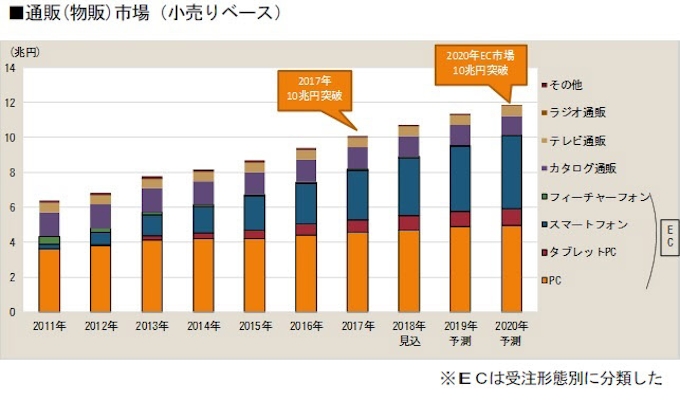 18年に10兆円を超える通販 Ec市場 ネット販売が拡大をけん引 富士経済調査 ネットショップ担当者フォーラム
